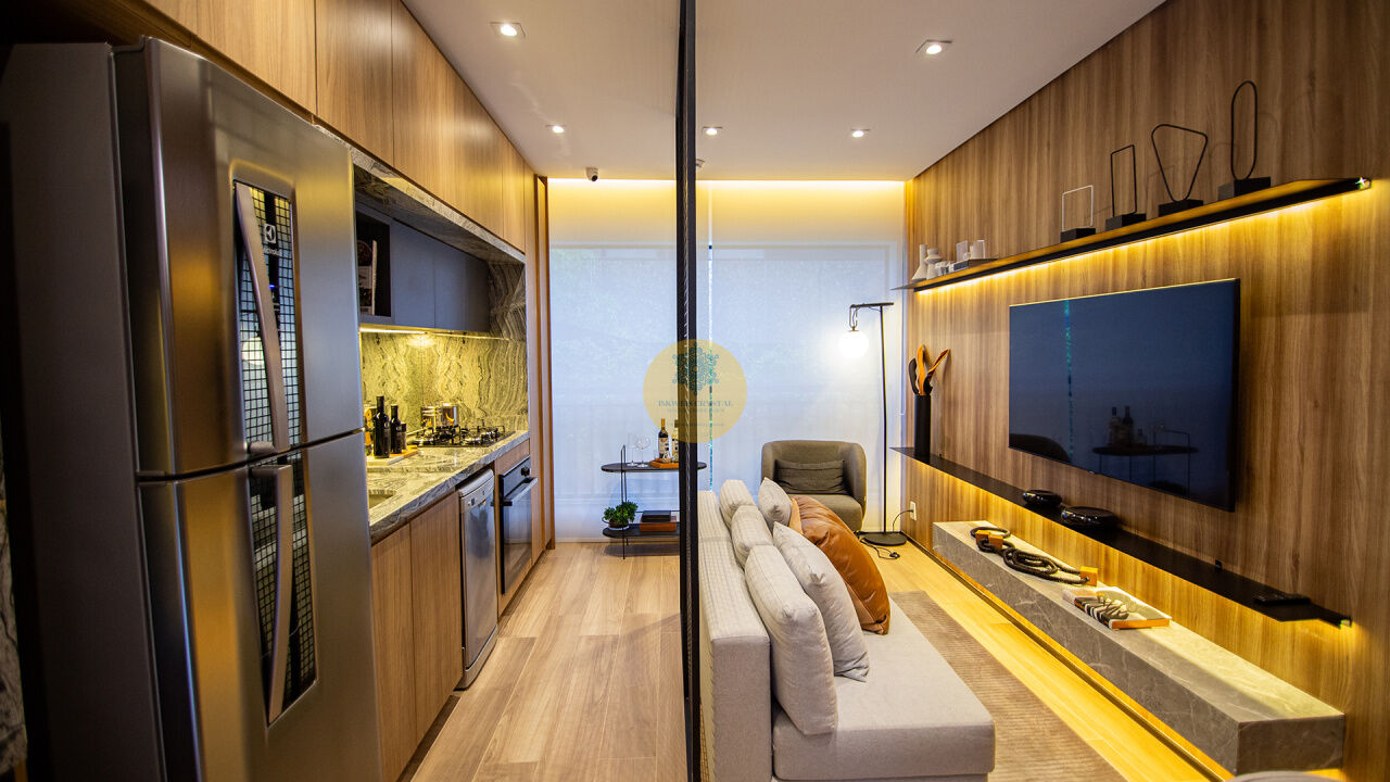 Um belo e bem localizado apartamento de 35 m² com 01 dormitório, sala com cozinha integrada, banheiro e terraço na Vila Madalena.